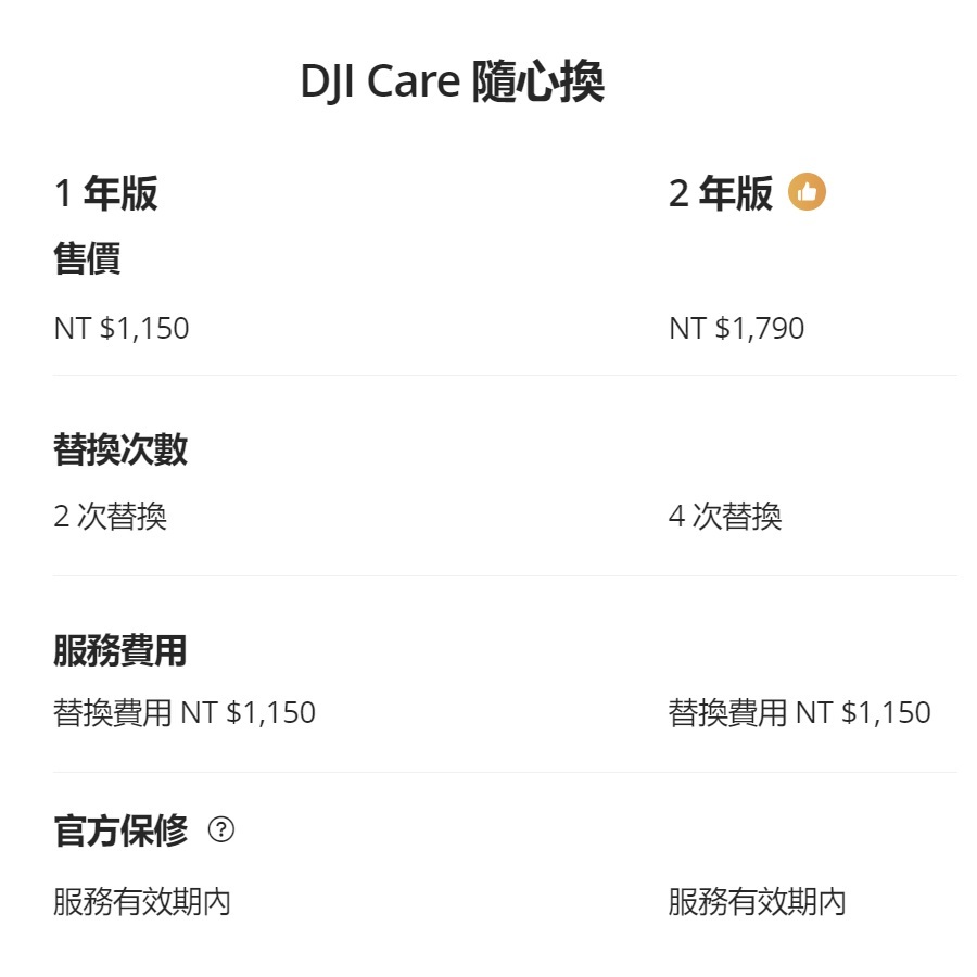 ▪ DJI Care 一年版:為您提供1年內2次低價置換服務。