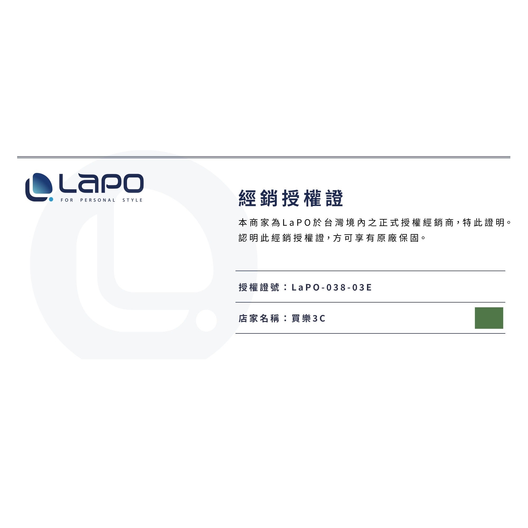 經銷授權證號:LaPO-038-03E